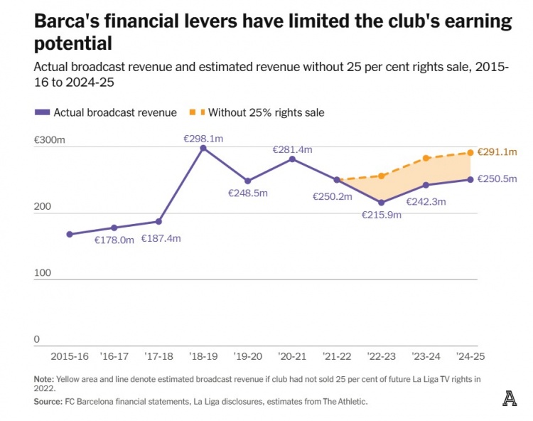 现款注入匡助对消了后一财年近2亿欧元的运营现款赤字。巴萨领有未知成本的回购权,可在25年期限前提早赎回这些权柄。但与此同期,出售意味着他们甩掉了可不雅的年度收入。