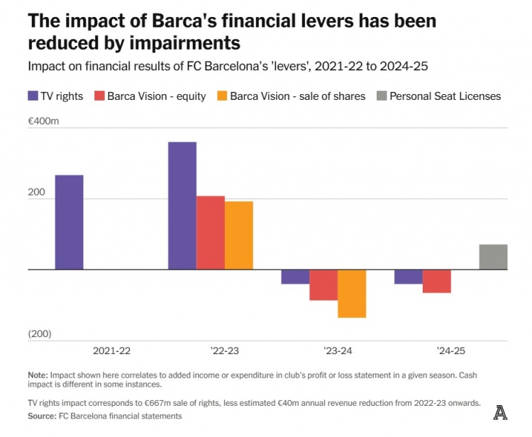 这些杠杆组成巴萨财务图景的关节部分,即便部分操作早在数年前就已运转。它们对诺坎普的财务产生了长远影响,正如赓续进行的翻修工程,让球队暂时告别了这座传说主场。
