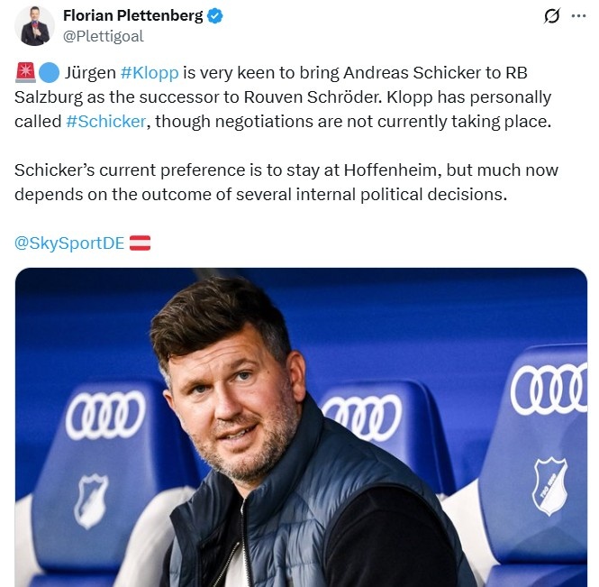 记者:克洛普相称渴慕为萨尔茨堡红牛引进霍芬海姆总监希克尔