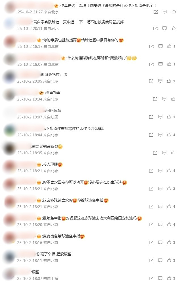 联系新闻——又与球迷突破!国安球迷赛后集体痛骂杨立瑜,球员比手势饱读掌回复