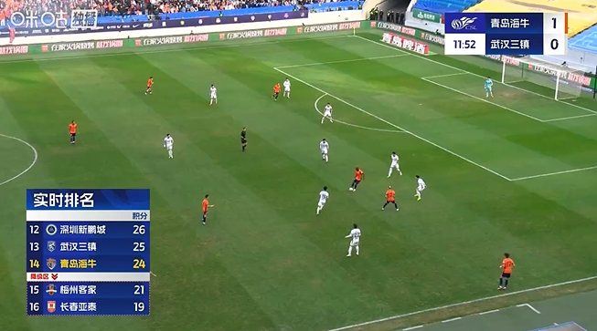 照此比分亚泰将提前左迁!兰克尔-泽补射破门,海牛1-0跳跃三镇