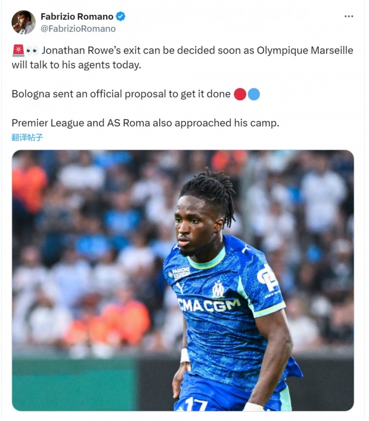 罗马诺披露,马赛将在今天与乔纳森-洛维的牙东谈主进行会谈,可能很快决定他的去留,博洛尼亚也曾提交了认真报价,以敲定转会往复,而英超俱乐部和罗马也与球员团队进行了扣问。