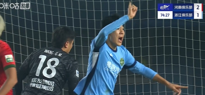 10月25日讯 河南vs浙江第75分钟,20岁张瑷晖头球破门,但边裁轻薄暗意越位!VAR未介入。