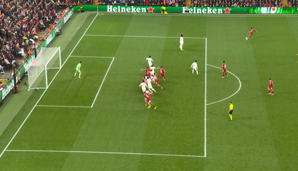 11月5日讯 欧冠第4轮利物浦vs皇马,索博苟且球开入禁区,麦卡利斯特头球破门!