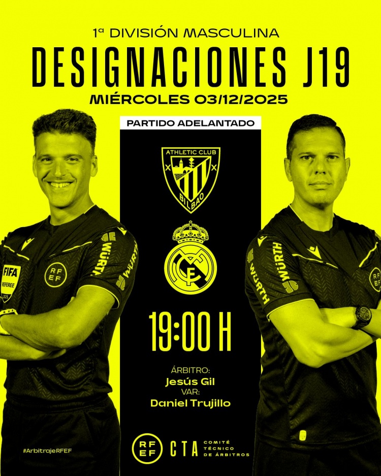 西甲官方:热苏斯·吉尔将王法毕尔巴鄂竞技vs皇马