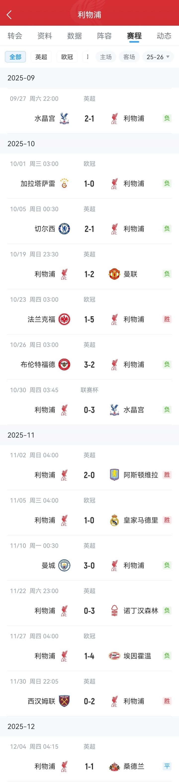 景色啥时辰来啊?利物浦近5场仅1胜1平3负,暂居英超第8欧冠第13