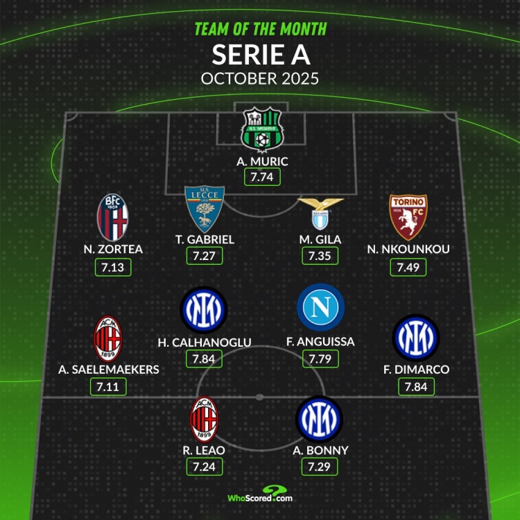 WhoScored意甲10月最好气势