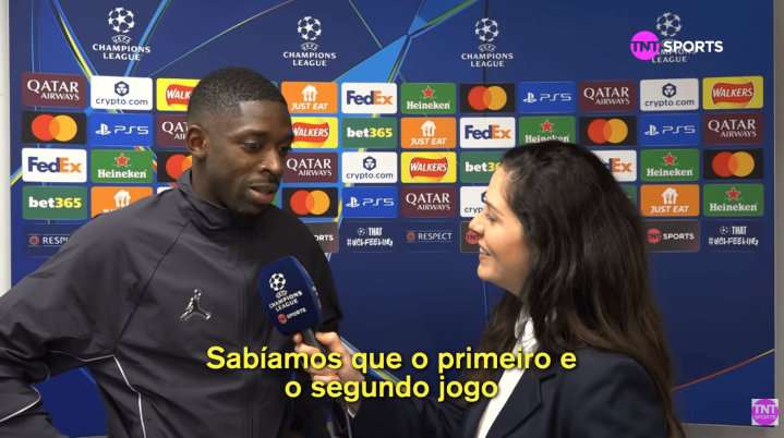 虎扑04月15日讯在巴黎圣日耳曼客场应战 击败利物浦、以总比分4-0晋级下一轮 欧冠准总决赛 后,本场赛事 发挥出色的奥斯曼-登贝莱接受了TNT巴西的赛后采访。他盛赞球队的队伍 精神和防卫 表现,并强调巴黎渴望赢得更多奖杯。